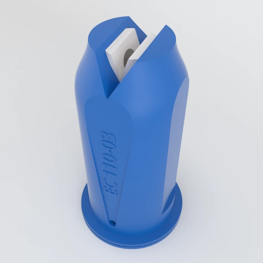 EC to rozpylacz eżektorowy ceramiczny. Dysza emituje w zależności od ciśnienia roboczego krople od bardzo grubych do średnich co pozwala na szerokie zastosowanie w zwalczaniu chorób i szkodników. Rozpylacze eżektorowe emitują krople napowietrzone ( w jednej dużej kropli jest zamkniętych kilkanaście mniejszych kropel) rozbijające się po kontakcie z liśćmi roślin na kilkanaście kropel drobnych gwarantując wysoką skuteczność środków ochrony roślin.